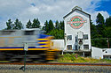 It's Winlock Egg Day but BNSF's Everett to Vancouver manifest freight has customers to serve and is making track speed rolling down the Napavine Hill grade. Winlock is home to the worlds largest egg and owes previous economic fortunes to egg and poultry production. The town has even gone so for as to have multiple statues of roosters scattered along side the downtown streets to remind folks of is economic heritage.