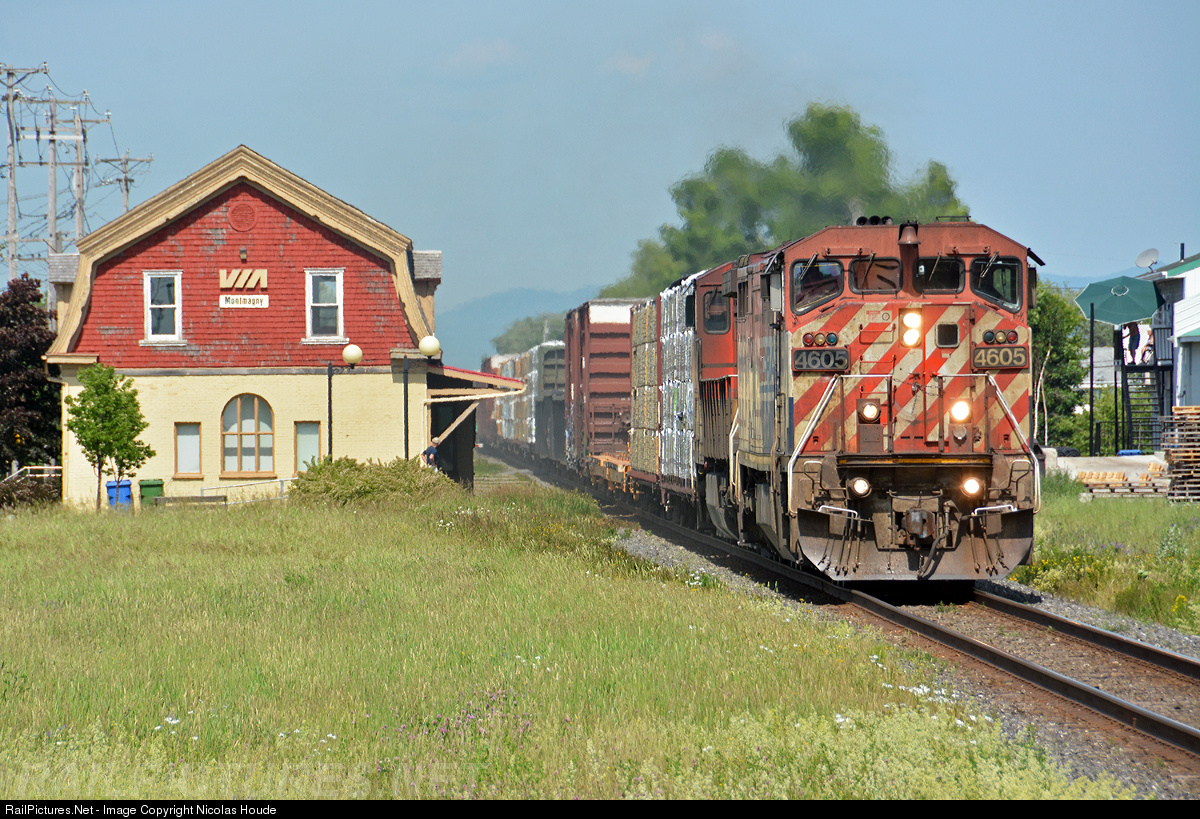 By a gorgeous summer day, CN 403 pass the Montmagny station. Built in 1880, the building will be subject to several changes and renovations over the years. In 1986, VIA Rail carries out major work to modernize its facilities. A few years later, they announced the closure of the premises and possibly the demolition of the station. In 1998, the City of Montmagny acquires the abandoned building to hold cultural activities.