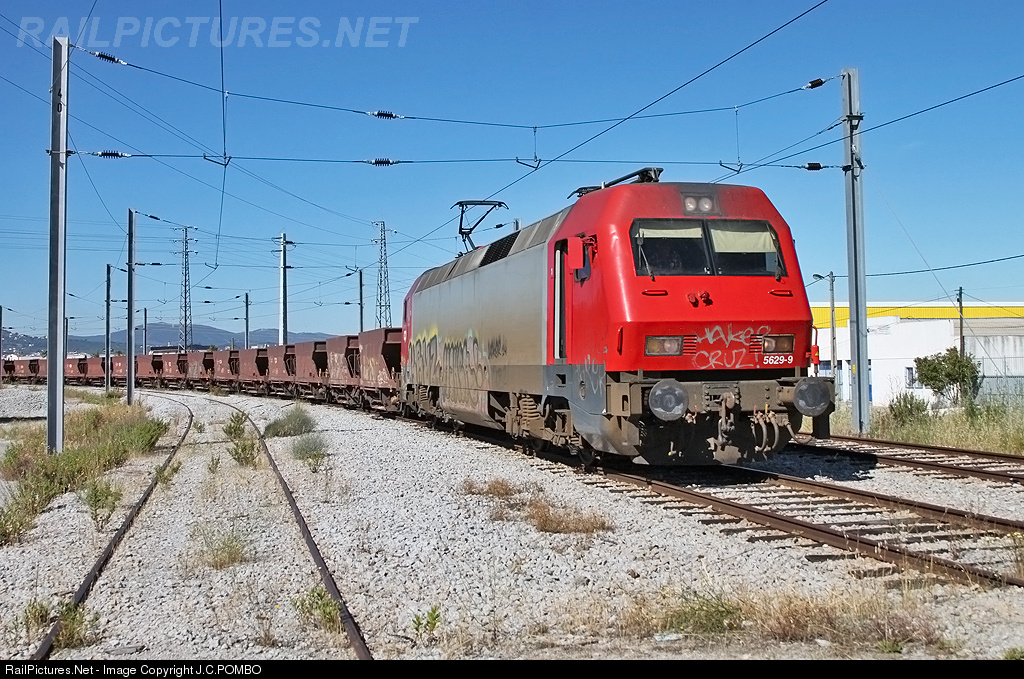 Siemens CP 5629 electric locomotive with the sand freight CP Carga 95215 from Entroncamento to Terminal de Mercadorias do Fundão.