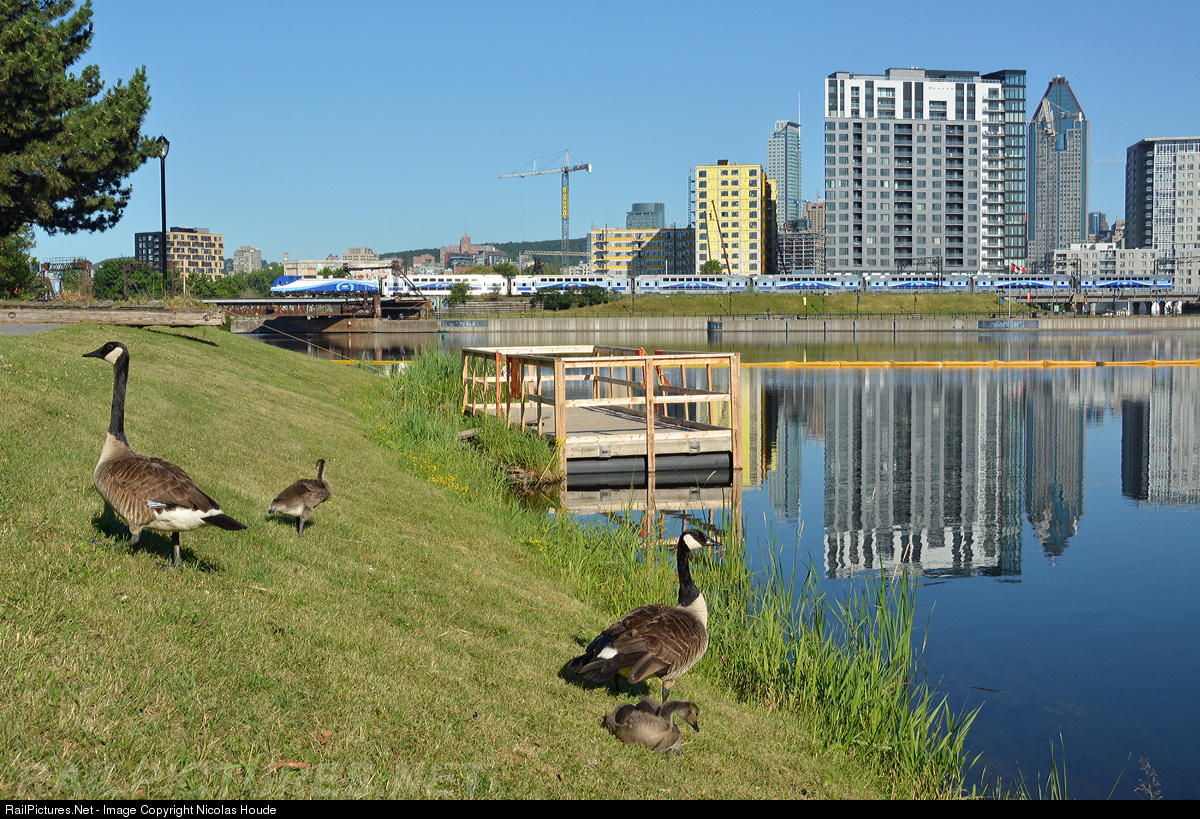 As the AMT 807 pass on the Wellington bridge, a little family of Canadian geese takes good times near the "Bassin Peel".