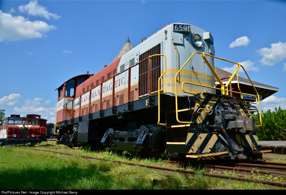 A classic CP switcher. CP 6591 is an S-3 built by Montreal Locomotive Works in 1957. It was retired by CP in 1982 and donated to the Railway Museum of Eastern Ontario in 1985. Preserved in Smiths Falls, it also spent much of its career in Smiths Falls.