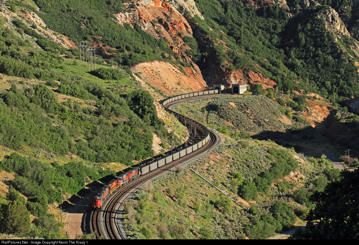 Westbound Utah Railway coal drag rolling out of the Thistle Tunnels.