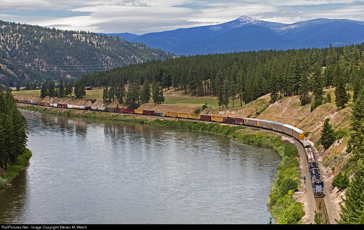 Skirting the Clark Fork River, a trio of MRL SD45's hustle a Westbound manifest into Lothrop - where they'll wait for a few hours due to MOW ahead finishing up the final touches on the Rivulet derailment site; where three Boeing 737's tumbled into the same river pictured.