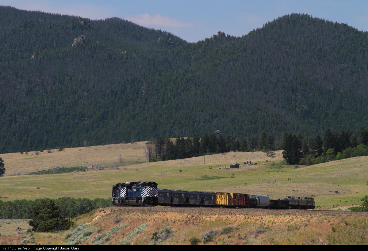 One of Montana Rail Links newest locomotives, the MRL4402 blast up the 2.2% grade at Austin, MT. These heavy mountain maulers were built to conquer this grade!