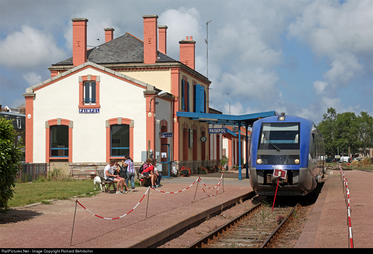 | Regional train Paimpol - Guingamp. The red sign in front of the railcar is for avoiding a departure. It will be used, when a opposite train is coming. |