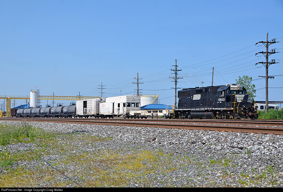 Departing CSX's Collinwood Yard in Euclid, Ohio, on July 21st, 2014, is train W05020 (Weed Sprayer; Willard OH to Cleveland OH), led by FURX GP38-2 5560, which was formerly Norfolk Southern 5560. This engine was rebuilt to GP38-2 standards from NS GP38AC 4149, which was originally Norfolk & Western 4149.
