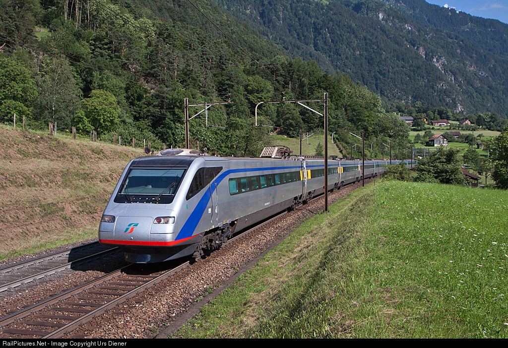 | Former Cisalpino tilting train ETR 470 004, now operated by Trenitalia, is running as eurocity train 318 from Milan (Italy) to Zürich (Switzerland). |