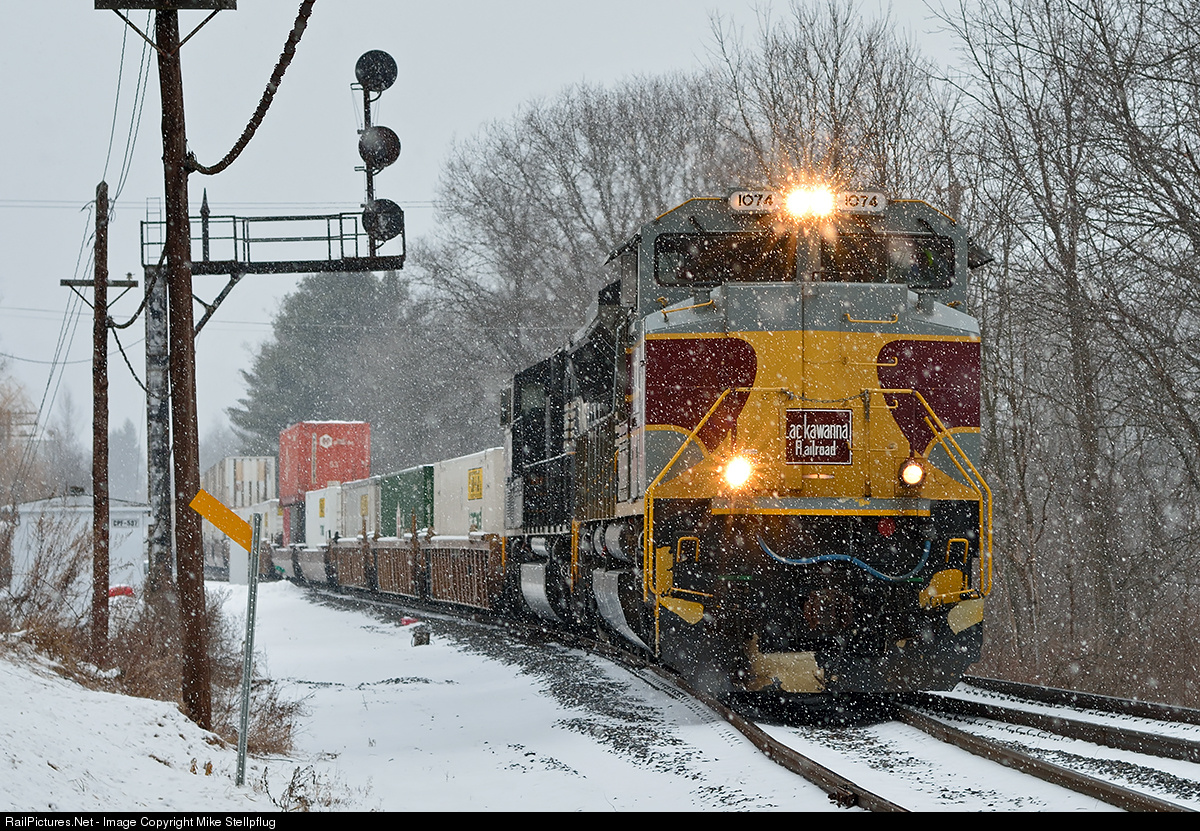| On a blustery Winter day, CP train 939 heads into the siding at Afton, NY for meets with opposing traffic. DLW 1074 looks good on ex D&H trackage that once used to see EL run thru power. |