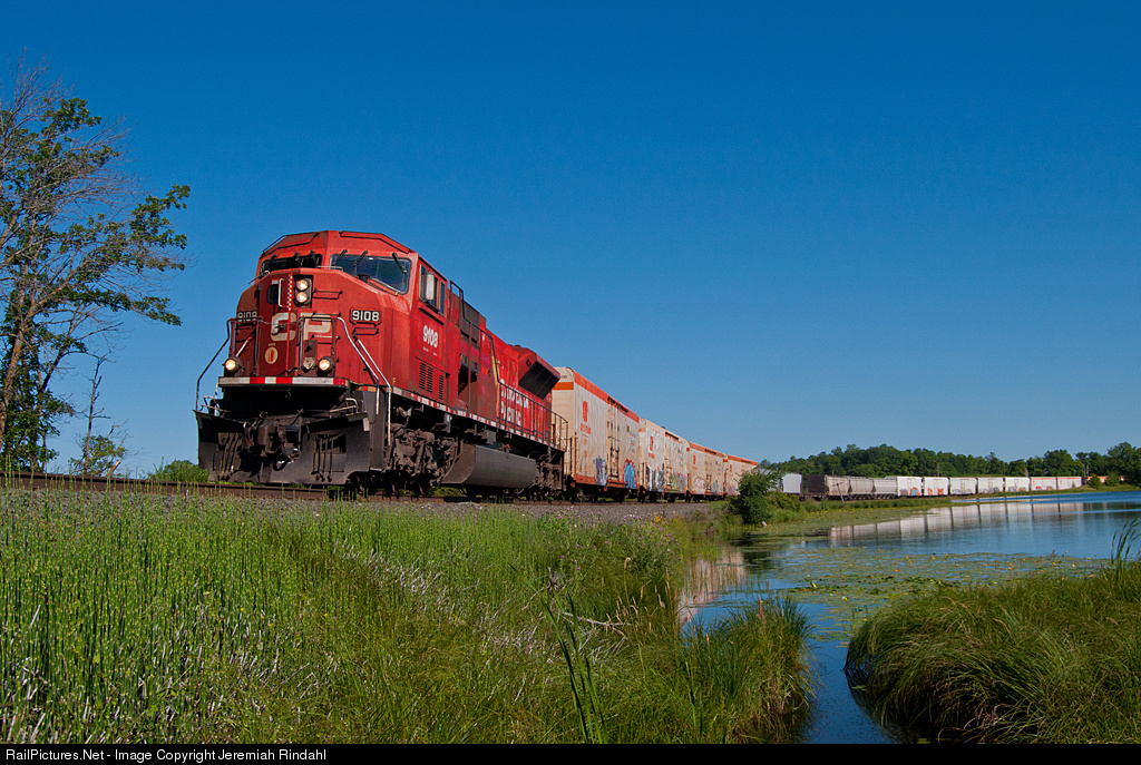 Here, the 9108 has sole duty of this eastbound manifest at Vergas, MN on a beautiful July morning.