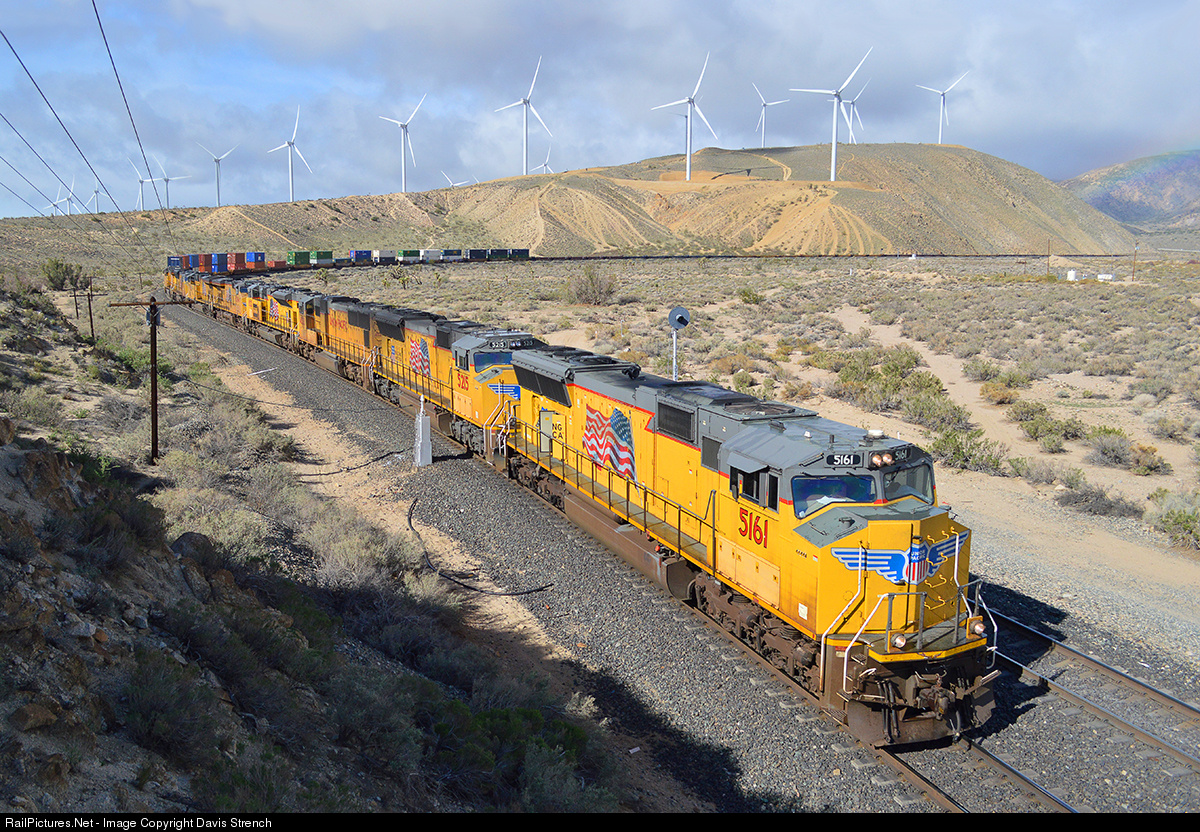 The photo of the trip! Sweet light, searchlights, a rainbow, and an amazing view! The IOALB of the 25th is seen here bringing a rake of engines, wells, and empty containers South from Oakland to Long Beach.