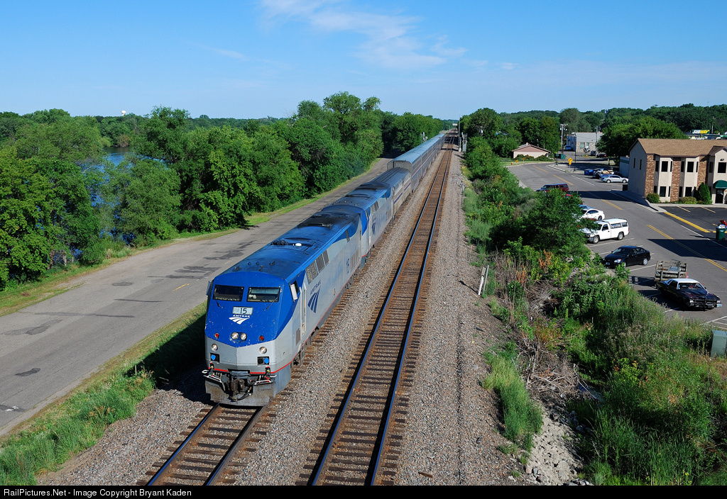 RailPictures.Net Photo: AMTK 15 Amtrak GE P42DC at Sauk Rapids, Minnesota by Bryant Kaden