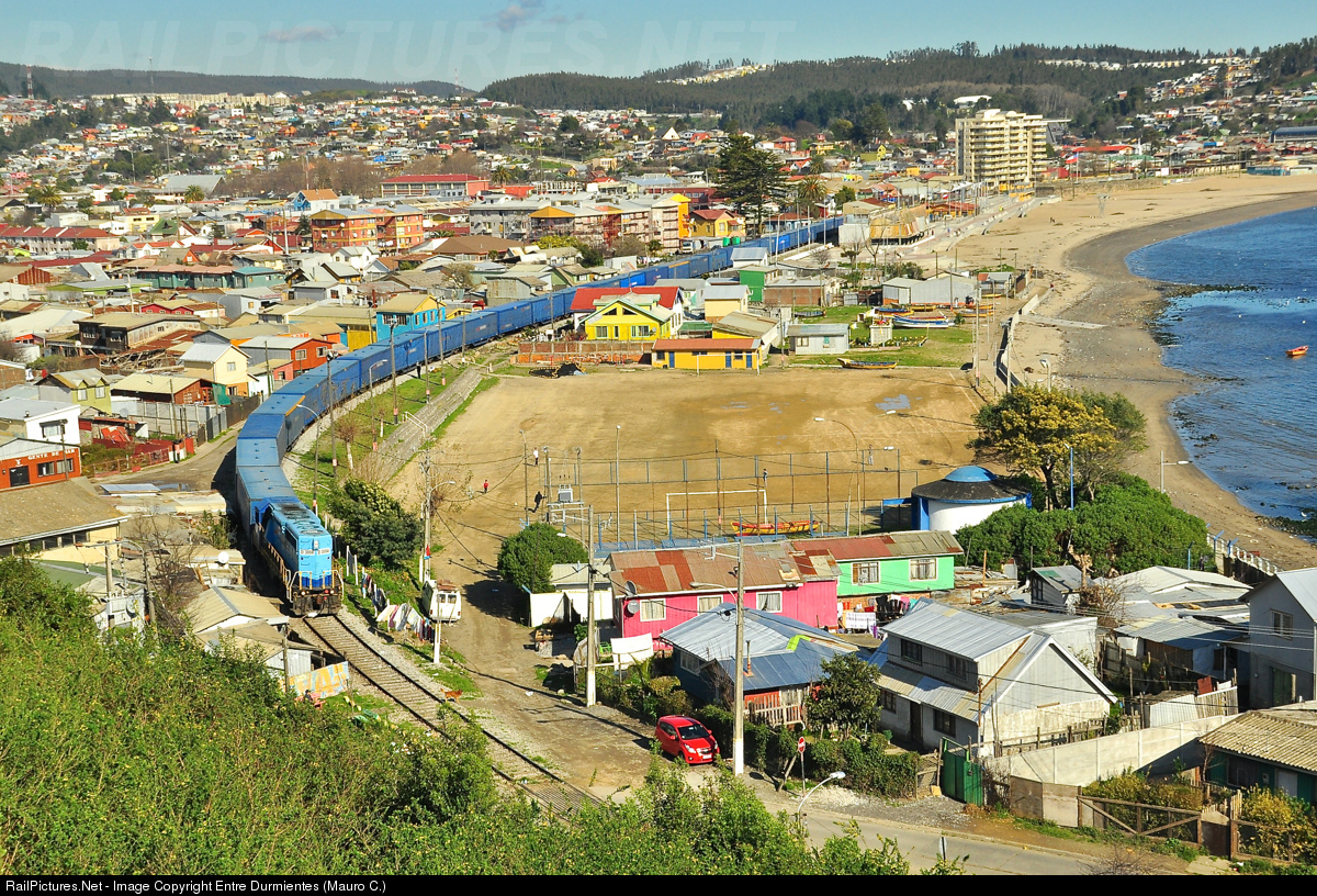 Bay of Penco and the Railroad: In a coastal environment, and colorful places, the train loaded with cellulose of the TRANSAP railway, is located near the seaport of Lirquén, through the town of Penco for their coastline.