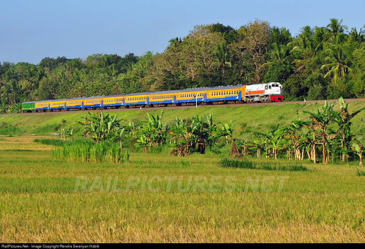 An economic Bengawan train from Solo to Jakarta passed a ricefield at Kalimenur