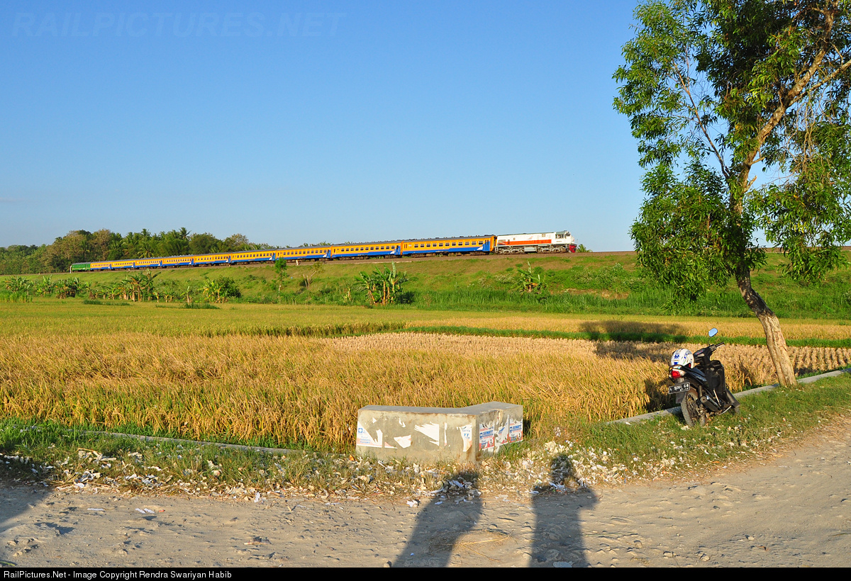 An economic Bengawan train from Solo to Jakarta passed a ricefield at Kalimenur
