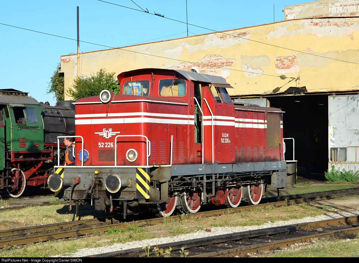 | The standard gauge diesel hydraulic shunting locomotive #52-226 is resting in the Sofia shed. The BDZ Class 52 is an export version of the Deutsche Reichsbahn (DR) Class V60. The Bulgarian units were built by VEB Lokomotiv und Electrotechnische Werke "Hans Beimler" in Hennigsdorf in the former East Germany (DDR) in 1965. |