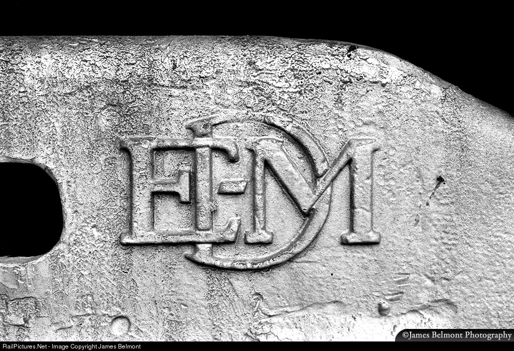 | The builder's logo was cast into the truck of EMD DD35 No. 74B, pictured at Provo Yard on Jan. 23, 1977. |