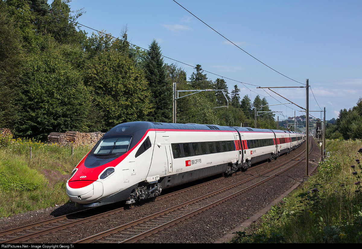 | Brand new highspeed tilting train RABe 503 # 011 (ETR 610) from Alstom/Savigliano for the SBB, running together with RABe 503 012, on a transfer run from Renens to Zürich Herdern between Rupperswil and Lenzburg. The SBB will get 8 of this trains to bring the fleet of the ETR 610 to 15. Trenitalia has 7 equal trains of this former Cisalpino vehicle. |