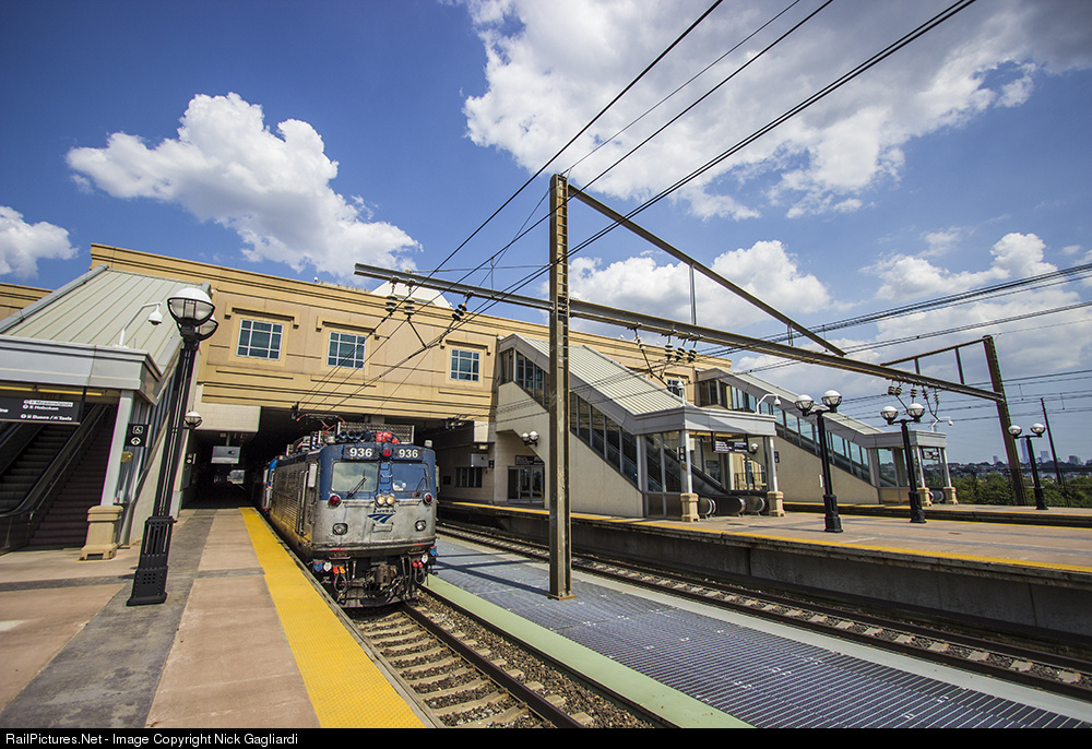 Test trains are no exception to this rule. Here, ACS-64 616 is sandwiched between AEM-7s 936 and 925. Waiting for the signal to proceed west towards Philadelphia. |