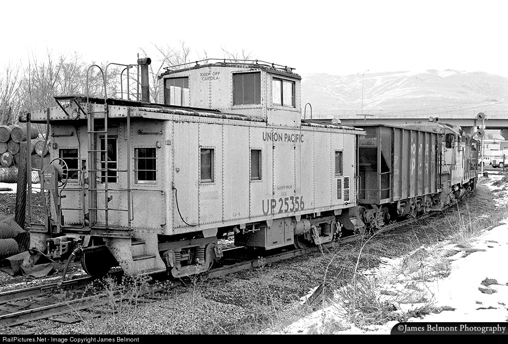 Union Pacific's St. John Local awaits a clear signal at Grant Tower to enter UP North Yard in Salt Lake City. January 14, 1977