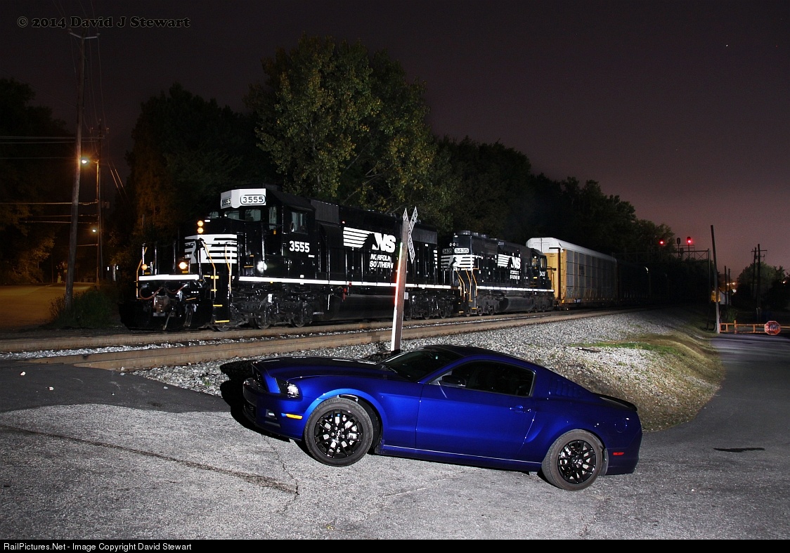 | American icons in the form of the versatile EMD SD40-2 and the Ford Mustang meet at McCaslin St in Atlanta, Georgia although it's business as usual for the freshly repainted NS 3555 as it leads P11 towards Inman Yard. |