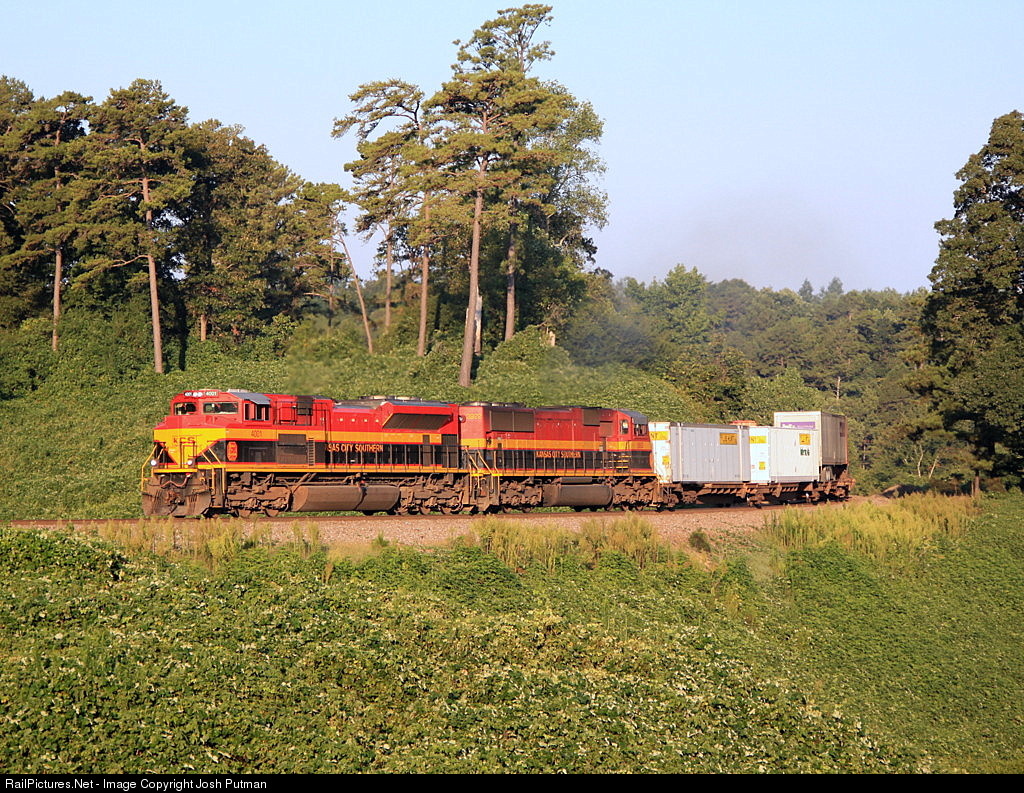 In the bright, early morning sun, KCS 4001 leads daily intermodal train 24E just west of Leeds, Alabama at the area known on the railroad as "Henry Ellen".