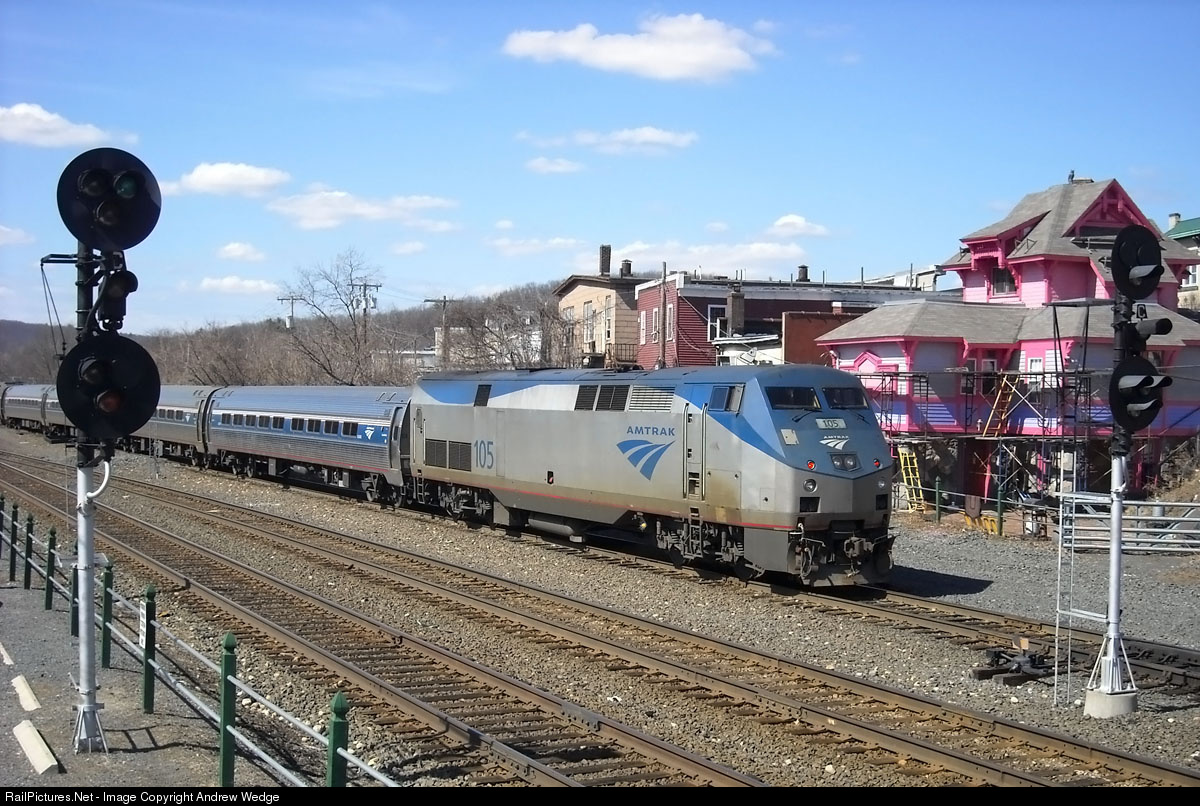 RailPictures.Net Photo: AMTK 105 Amtrak GE P40DC at Palmer, Massachusetts by Andrew Wedge