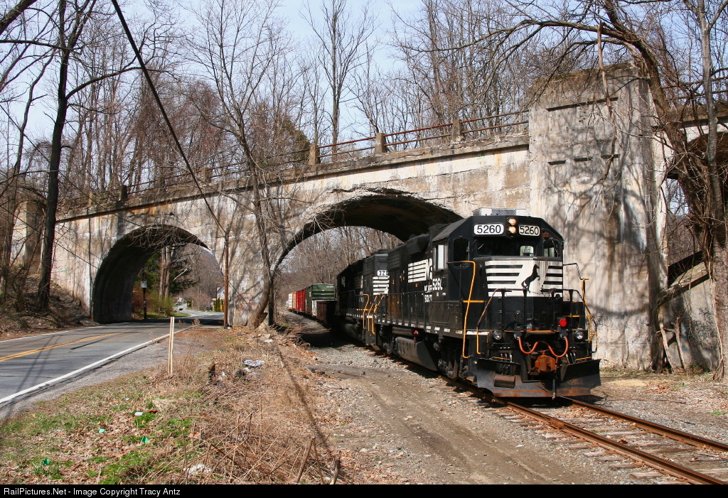 NS H76 passes under the Lackawanna Cut-Off viaduct on a portion of the Portland Secondary which was built as the original DL&W main, later known as the Old Road after construction of the Cut-Off circa 1909.