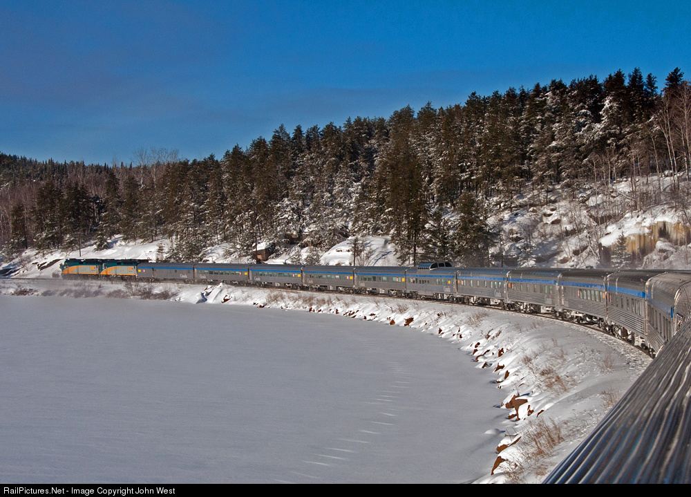 After spending much of the second night at Sioux Lookout, reportedly due to a freight train ahead with brake problems and then our train having its own brake problems, the second morning provided a cold but sunny crossing of western Ontario that we rarely get to see. There is nothing quite so bright as winter sun on a clear day. On the Canadian being late is not necessarily a bad thing, and in this case despite being many hours late in Ontario we arrived at Vancouver early.