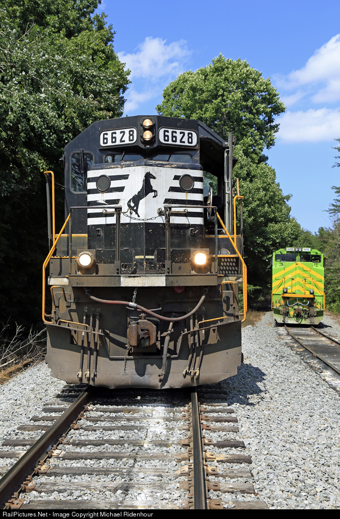A local on the Winston Salem Southbound Railway powered by NS SD60 6628 prepares to start its afternoon while NS 1072 the Illinois Terminal Heritage Unit looks on. (Taken with Permission)