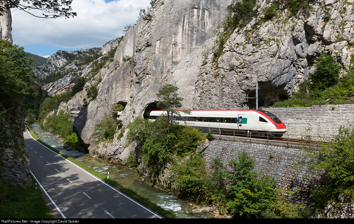 Squeezing through: The Birs river, a road and a railway line share the space in the Moutier Gorge. The line is served hourly by RABDe 500 tilting trains, hourly RegioExpress services and occasional freight trains.