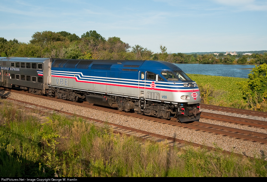 RailPictures.Net Photo: VRE V55 Virginia Rail Express (VRE) MPI MP36PH-3C at Arlington, Virginia by George W. Hamlin