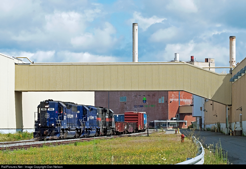 Following a sadly predictable pattern in Maine over the last several years, pulp mill Old Town Fuel & Fiber has been shut down indefinitely. This means the loss of 180 jobs as well as one of Pan Am Railways biggest customers on the east end of their system. Mill security were friendly, allowing access to the property for this shot, and cautiously optimistic that the mill would find a buyer and reopen relatively soon. Still, with no foul oder in the air, and no sign of smoke coming out of the stacks that could normally be seen from miles away, it's clear that times are tough in Old Town, Maine, as Pan Am train MABA 382 rolls through the mill with a trio of high hood GP40s.