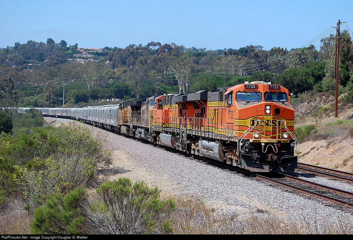 The Ringling Brothers and Barnum & Bailey "Blue Unit" circus train departed San Diego, California, on August 11, 2014, to begin its trip to Oakland. Power for the train was a pair of BNSF ES44DCs 7732 and 7704, along with Union Pacific AC4400CW 7249 and AC600CW 6956. The two UP diesels brought the train down to San Diego from Anaheim the previous week.)