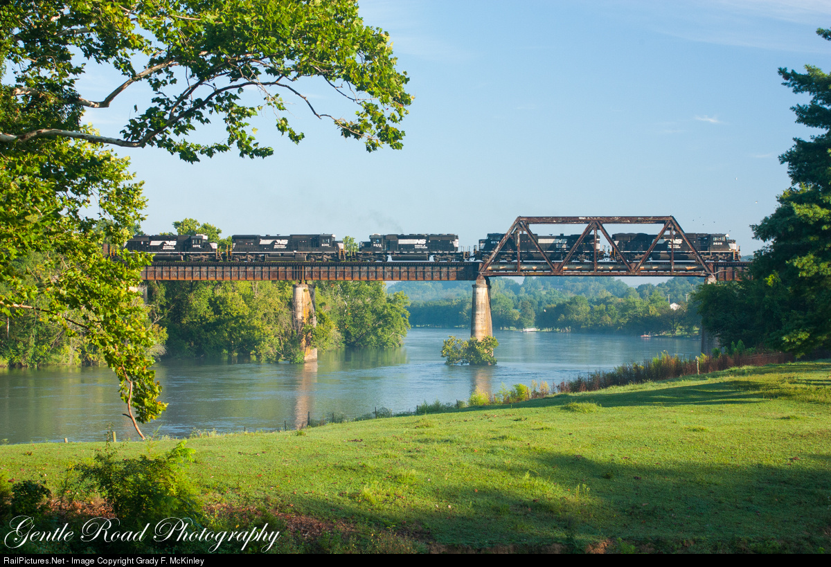 As the last of the morning fog burns off NS #2629 leads eastbound train 179 over the calm waters of the Holston River at Strawberry Plains, TN on this cool August morning.