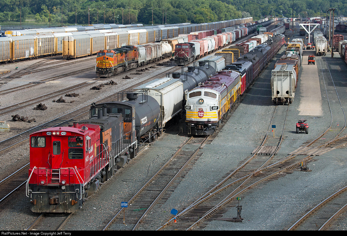 A pair of ex-Milwaukee Road MP15ACs are making a move on the lead as the CP 4107 West finishes up its air test. The train is deadheading from St. Paul to Calgary after attending an event in Chicago.