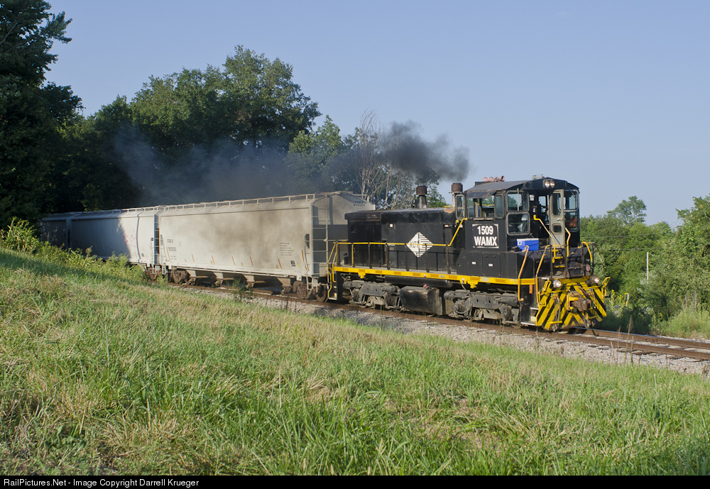 | WAMX 1509, running as KAW 410, an as-needed switch job, lets out some black smoke on the southbound run back to Liberty, MO. |