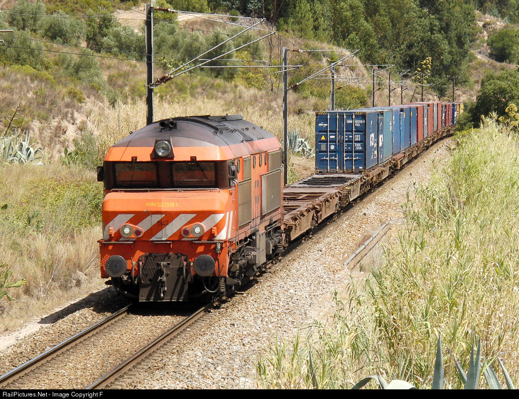 Diesel locomotive 1942 with a freight train from Elvas to Entroncamento.