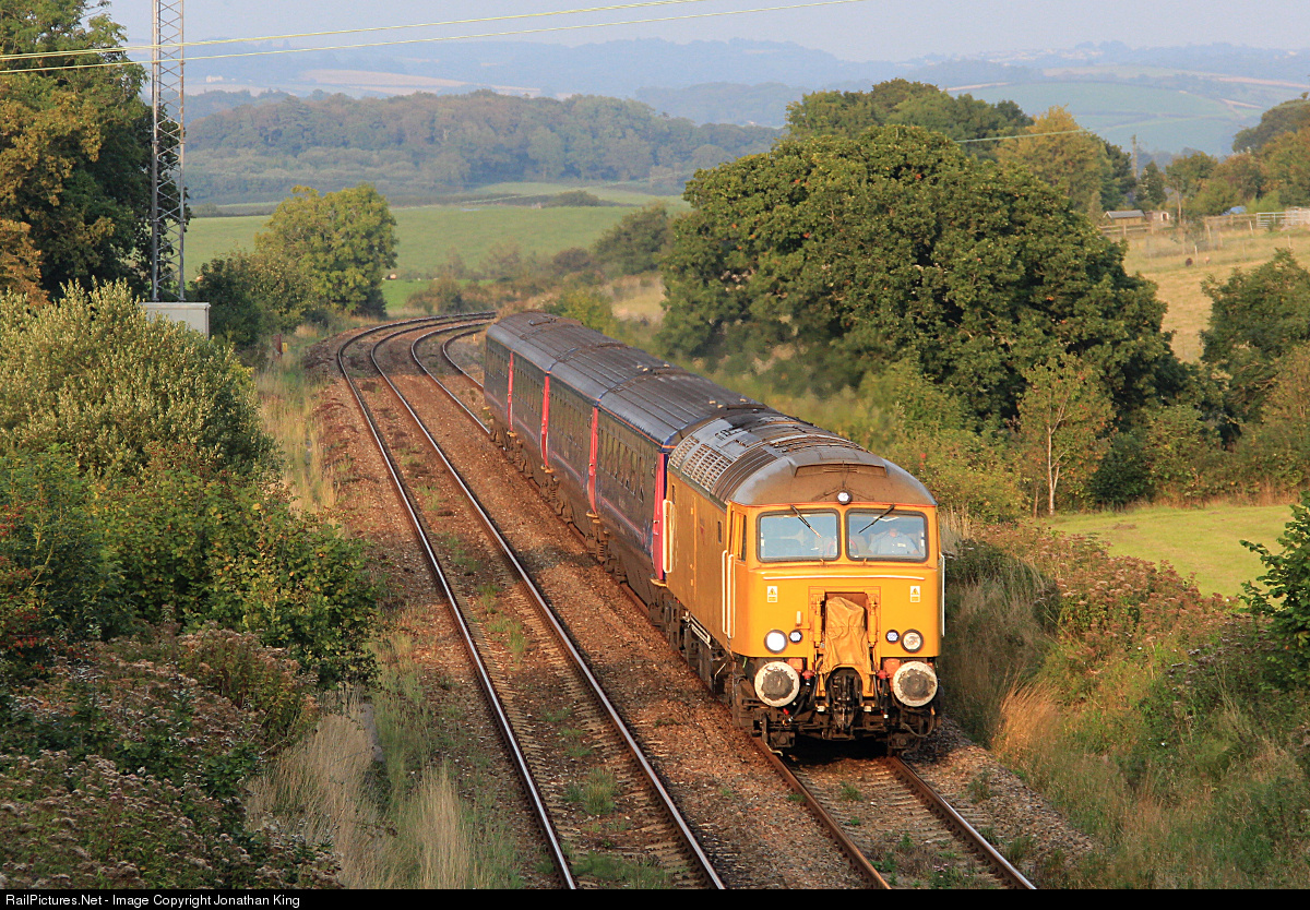 | A Network Rail 57 on hire to First Great Western climbs Rattery bank just before sunset on 6th September 2014 with a train of empty coaches from Exeter to Penzance Long Rock Depot.