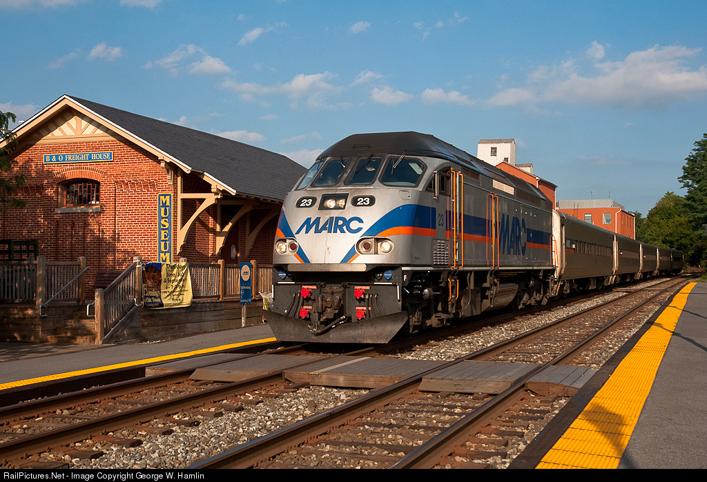 RailPictures.Net Photo: MARC 23 MARC (Maryland Area Rail Commuter) MPI MP36PH-3C at Gaithersburg, Maryland by George W. Hamlin