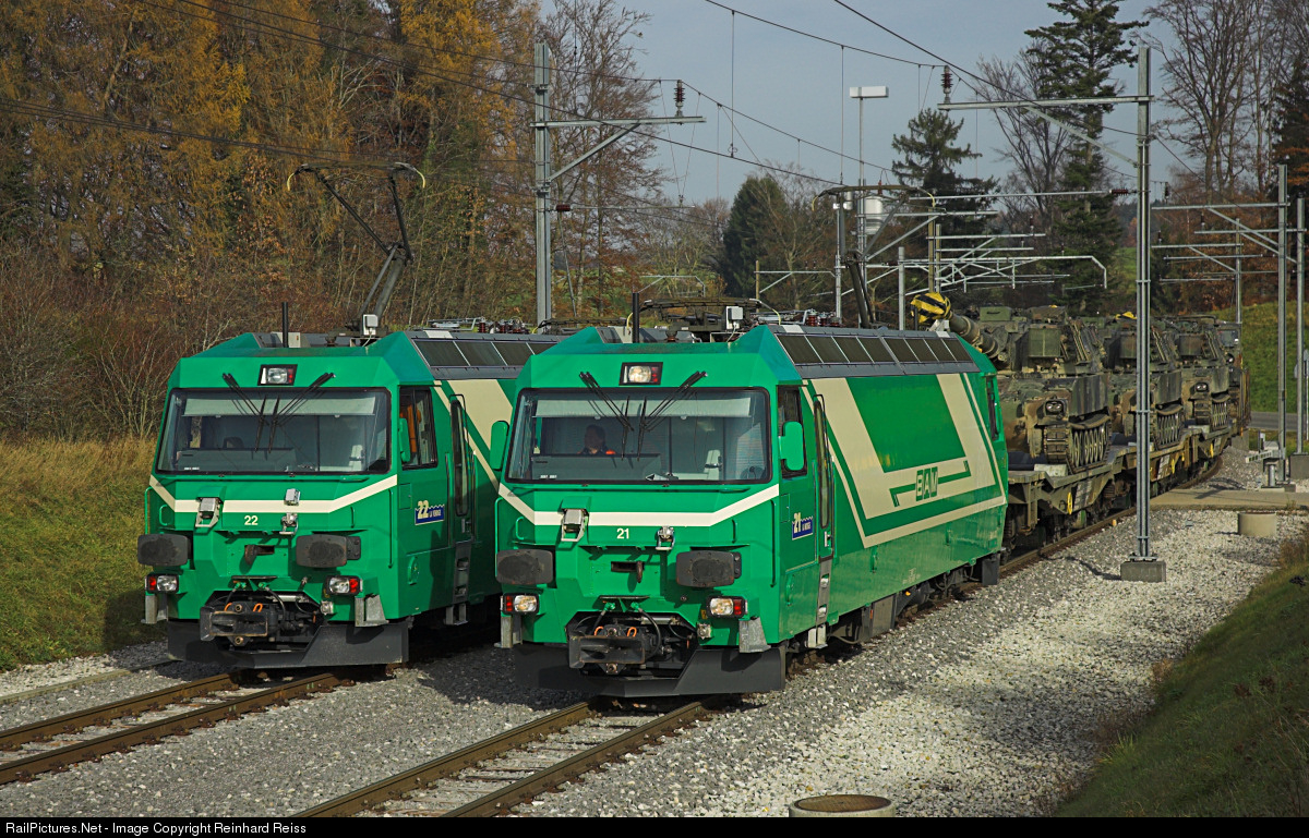 BAM No 21 reaches Bière barracks station with a couple of howitzers M-109 from Swiss Army. BAM No 22 waits for departure to Morges, where another group of armed vehicles waits to be moved to Bière barracks.