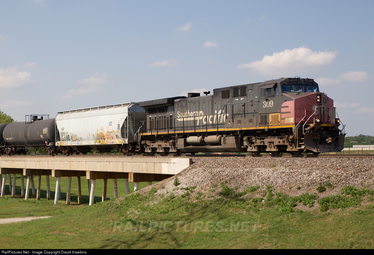Union Pacific unit oil train from Wichita Falls TX with a SP leader south on BNSF trackage rights will turn east at Tower 55 heading to El Dorado AR with UP 5640 pushing the rear end.