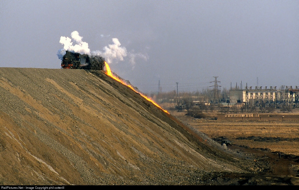 An SY class 2-8-2 adds to the slag heap at Baotou steelworks in 2001.