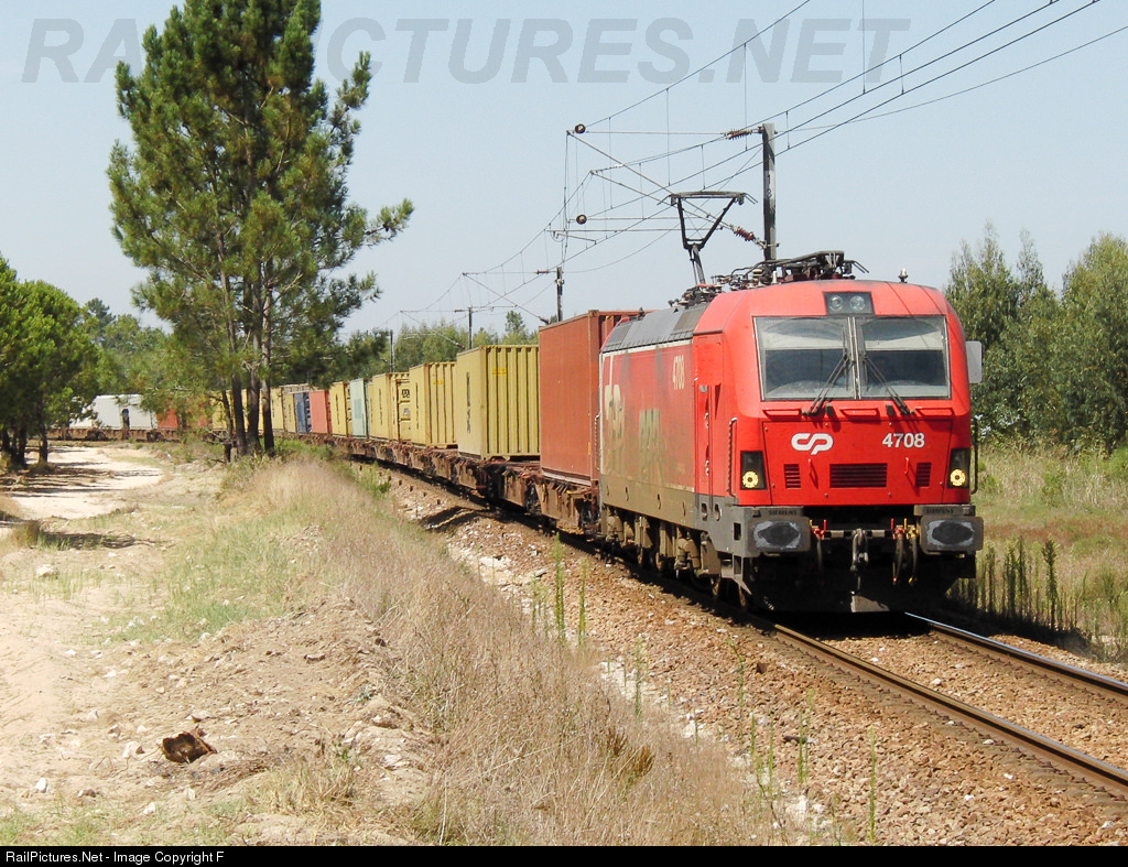 Electric locomotive 4708 with a container transportation train from Bobadela do Sines.