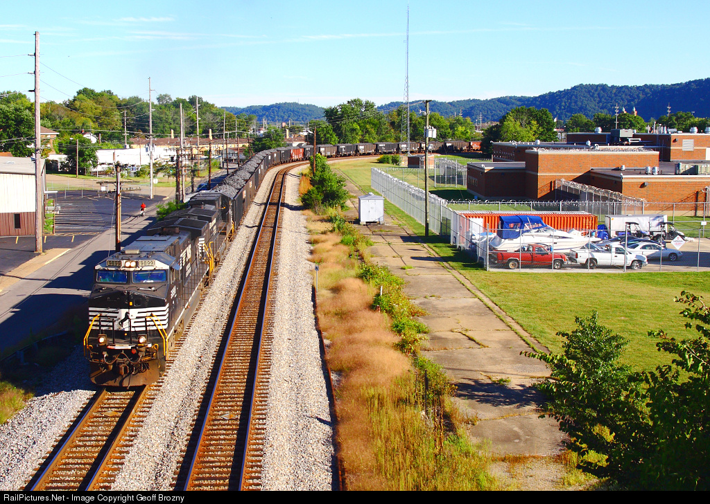 | The NS 9899 leads a train of coke around the bend, and behind the Scioto County Sheriff's Department, on the Columbus District. |