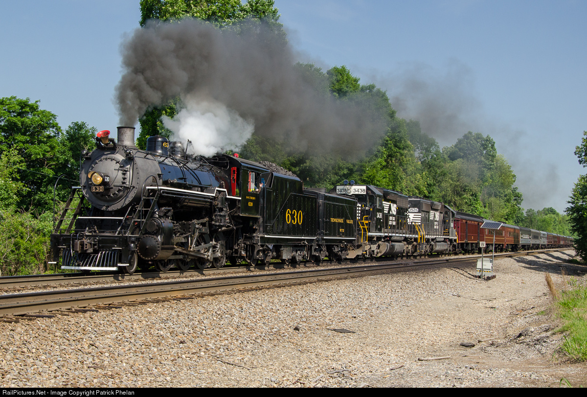 | TVRM's Southern 630 storms south on the Rathole for Oneida, TN with an excursion from Lexington, KY. |