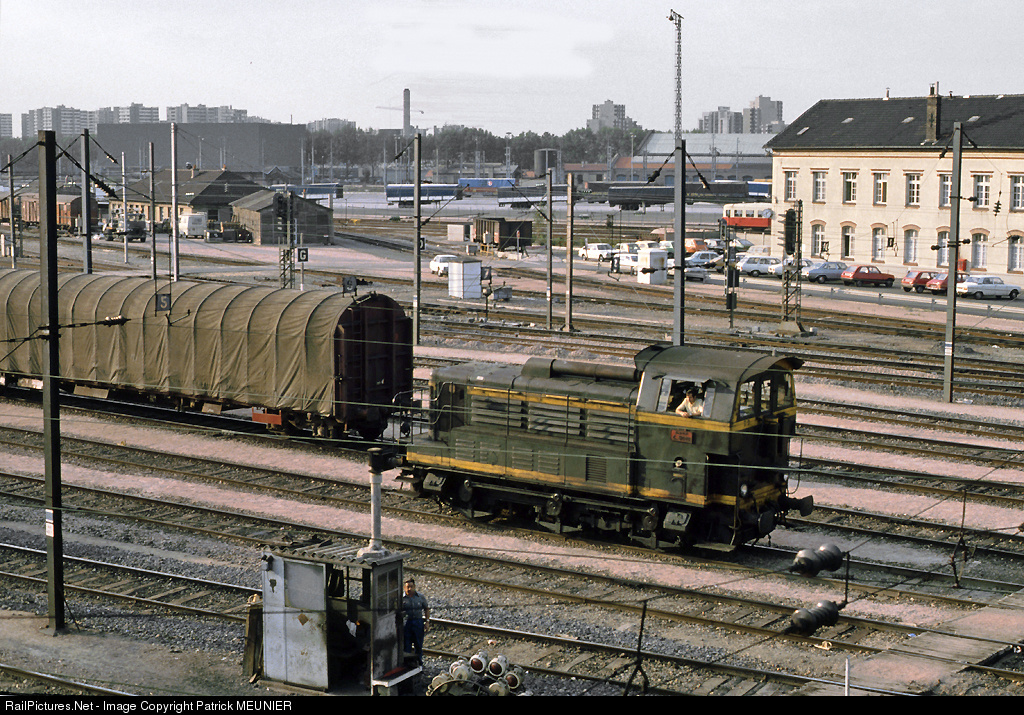 | Photo JEAN-PIERRE HAMEAU Wide sight of the sorting yard of Noisy, where a class C 61000 - three axles - is shunting. The nose of a railcar class X 3800 can be seen in the background. |