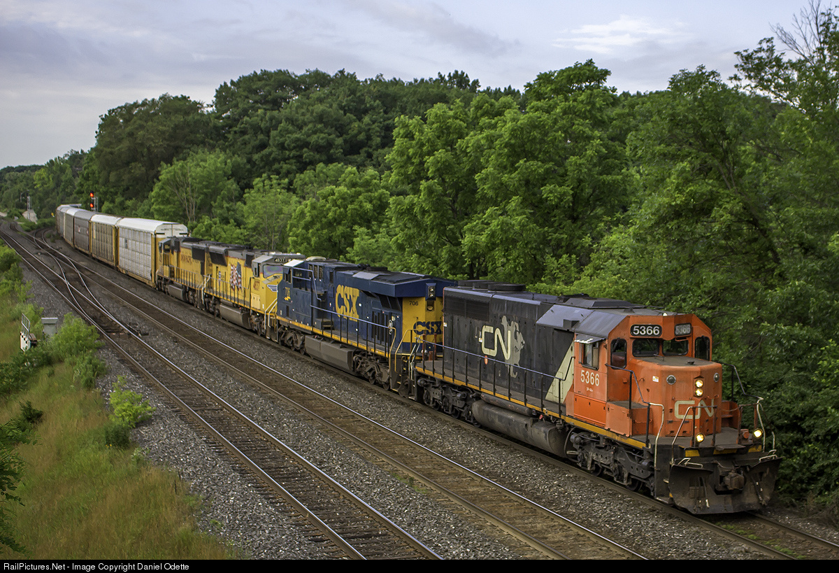 Getting four hours of sleep is pretty terrible. However, for a lashup like this, I had to get up for it. Thanks to a heads up from a few railfans, I was able to get down to Bayview for it. Terrified of its earlier than expected departure out of Sarnia, I thought I had little chance, however I ended up waiting almost an hour at Bayview. Finally, CN X396 whipped off the Dundas Sub with CN 5366, CSX 706, UP 4837 and 4529. I must say, this was the best lashup I had seen in a long time. Grumpy as a bear going home due to horrible sleep, I made sure I remembered, it was worth it.