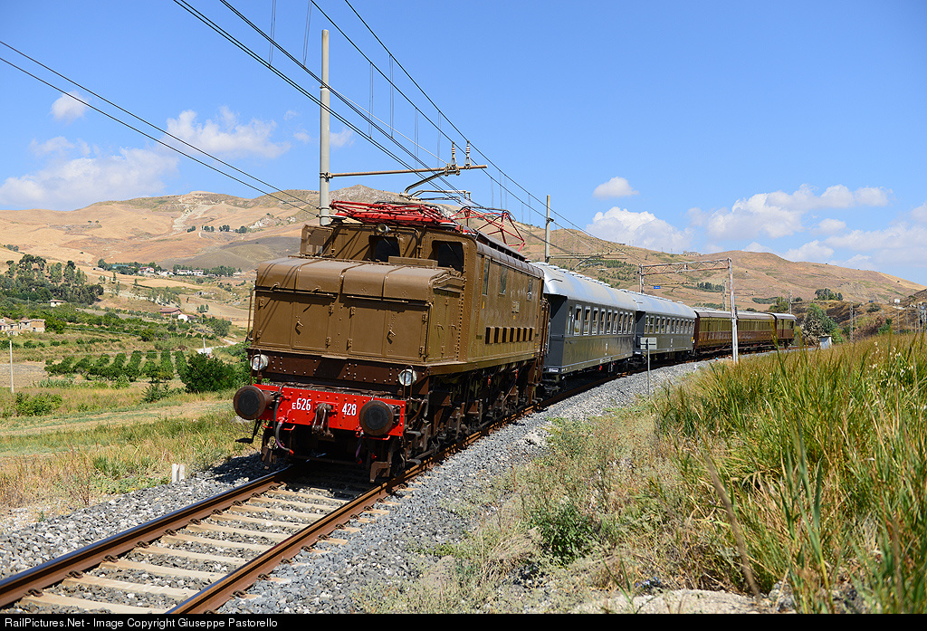 | historic train called "train to Santa Rosalia." Organized by the "Trenodoc" of Palermo. The shot was made near the P.L. the junction for Acquaviva- Casteltermini (in the province of Agrigento), along the railroad "Palermo - Agrigento." The wonderful electric locomotive E626 group has been recently restored (by the members of the Association of Trenodoc) with the original livery. The same treatment had wagons. |