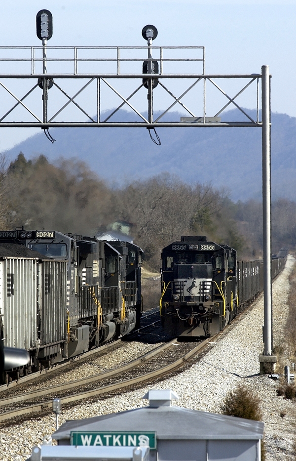 NS 78G passes NS 721 in the siding at Watkins, VA.