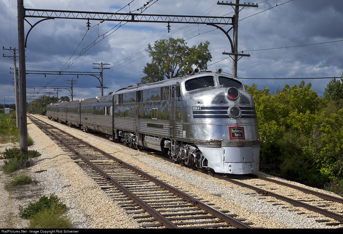 Museum Showcase weekend at IRM featured the Frisco 1630 with a 11 car train, a train set representative of a 1950's C&NW scoot powered by an RSD5, many electric passenger cars, and this, the sole remaining E5A pulling her articulated Nebraska Zephyr.